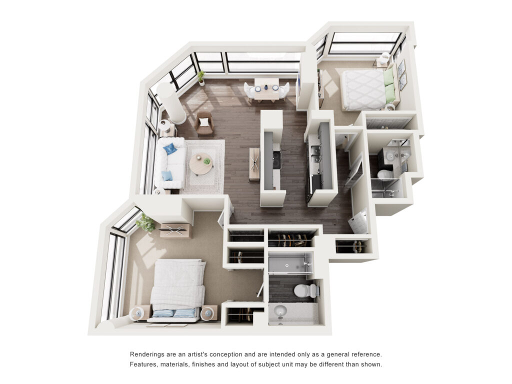 Choice of studio and one- or two-bedroom apartment styles with kitchenettes